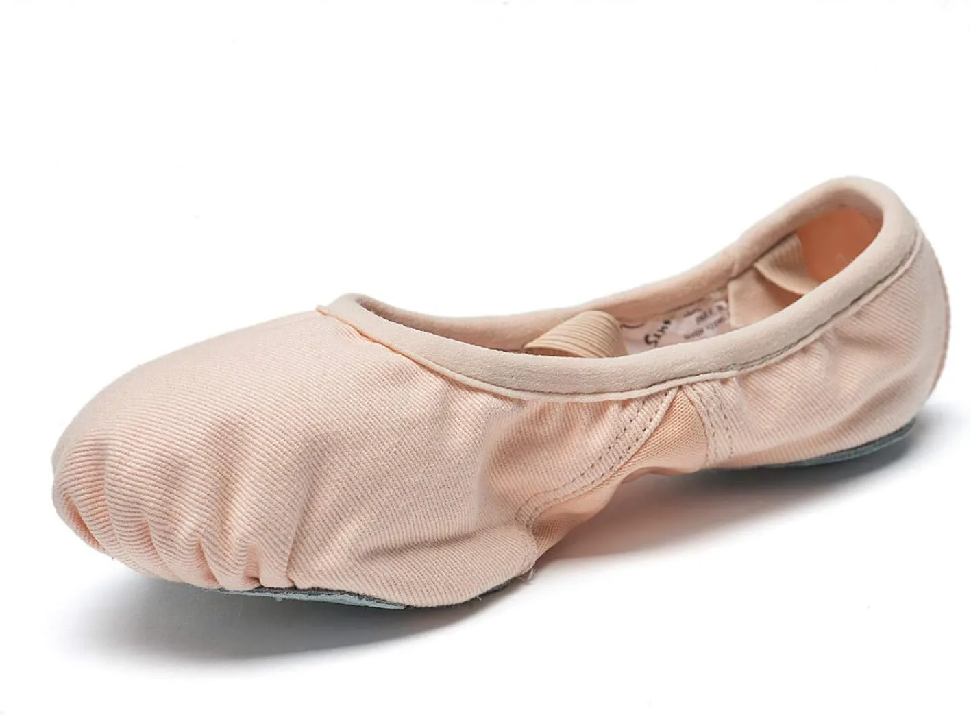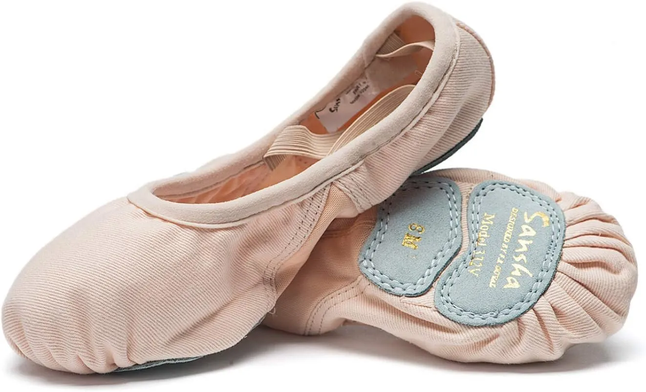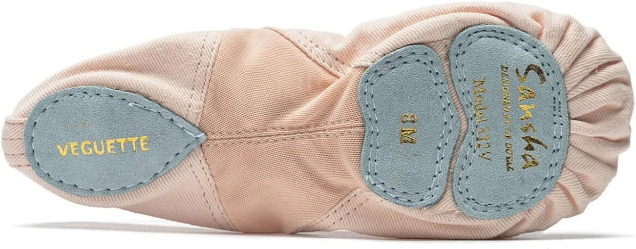 Vegan ballet slippers made with strong canvas and microfiber split sole, breathable mesh arch, elasticated border
